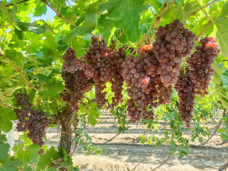 果蔬公司葡萄基地位于国家农产品质量安全县--新疆第五师双河市,所产葡萄以色泽艳丽、肉质爽脆,果肉半透明紧实、口味纯正而享誉国内外,获得“中国特色农产品优势区”“中国红地球葡萄之乡”称号;基地被认定为“国家级出口食品农产品质量安全示范区”“国家外贸转型示范基地”和“农业国际贸易高质量发展基地”