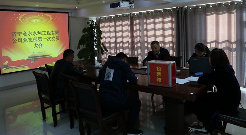 会议宣读《关于同意成立中国共产党济宁金水水利工程有限公司支部的批复》文件,宣布济宁金水水利工程有限公司党支部正式成立。随后党支部选举采用等额选举办法,以无记名投票方式,会议选举了第一届党支部书记及其他党支部委员。