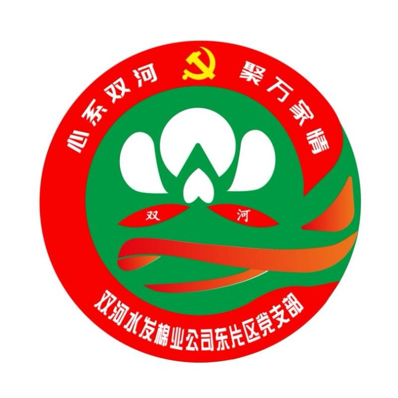双河水发棉业公司东片区党建品牌标识主架构采用“心系双河 聚万家情”,党旗为引领,结合绿叶、棉花、飘带等元素,寓意:
