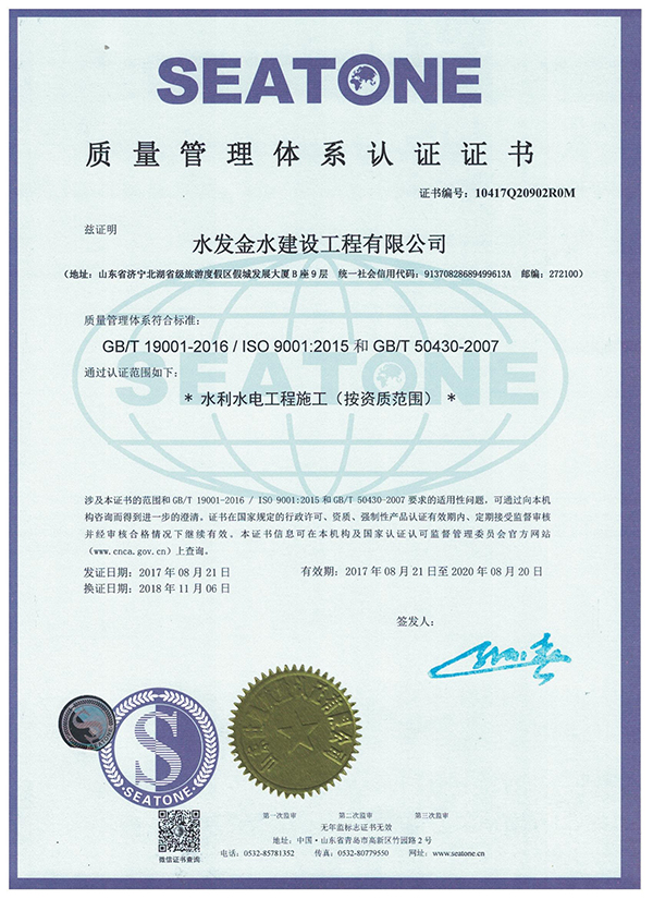 水发金水建设工程有限公司 三体证书-质量