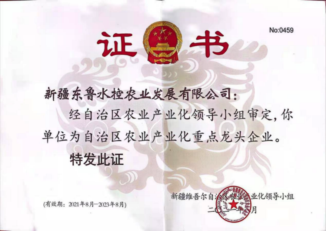 【农业产业化重点龙头企业】新疆东鲁水控农业发展有限公司