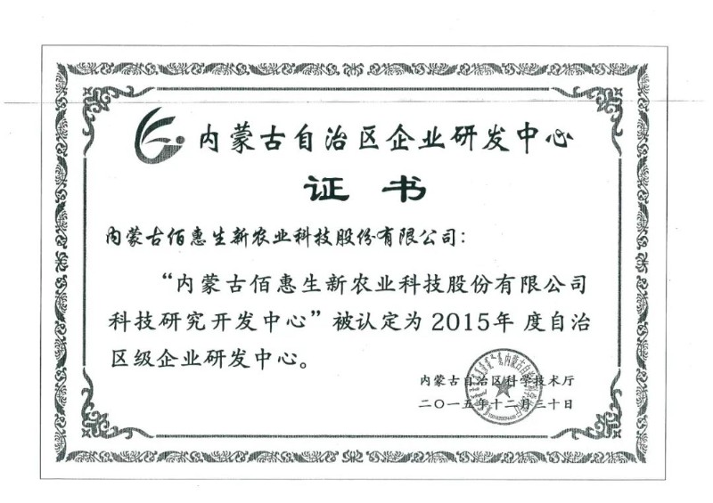 【企业技术中心】内蒙古佰惠生新农业科技股份有限公司