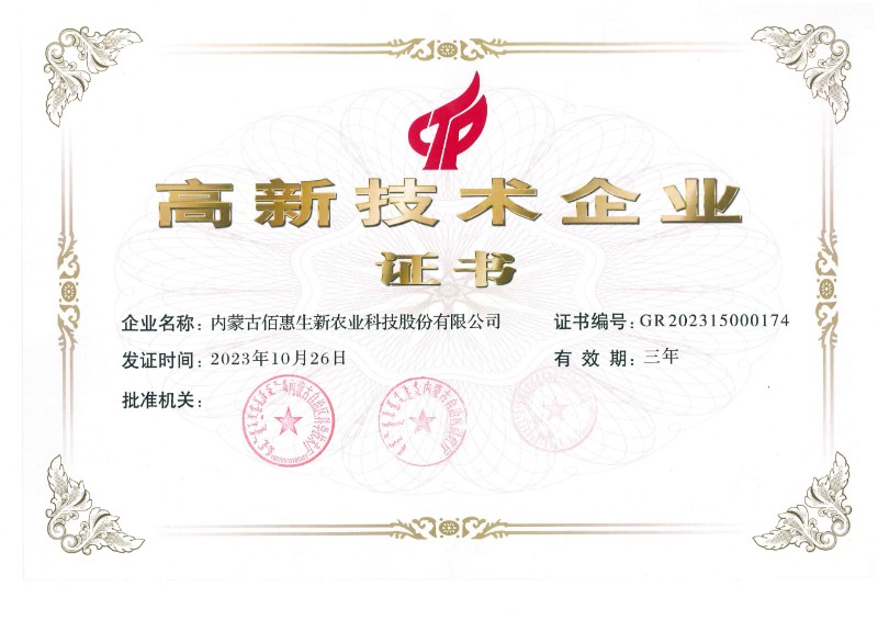 【高新技术企业】内蒙古佰惠生新农业科技股份有限公司
