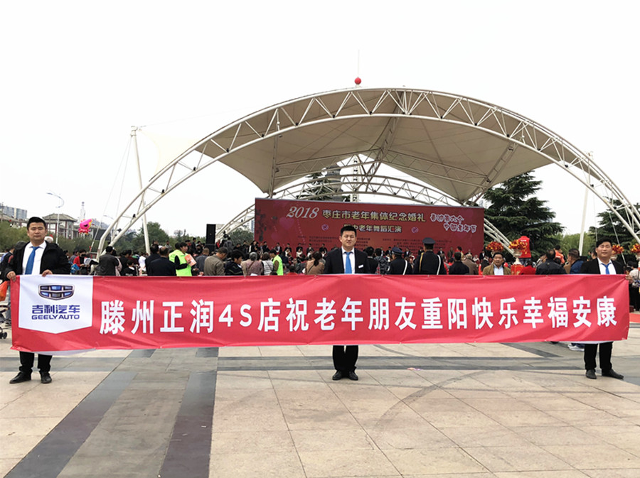 滕州正润吉利4S店提供了6辆试乘、试驾车作为婚车参加了此次活动,负责接送婚礼老人、体验试乘以及老年车模纪念留影等。