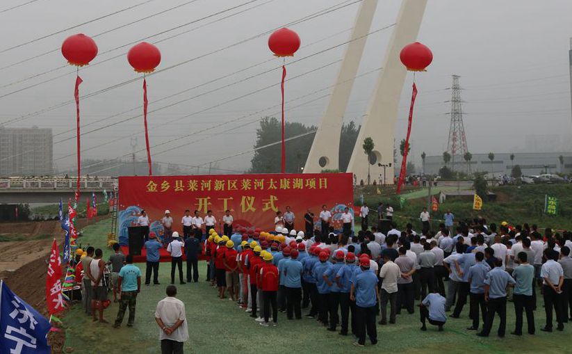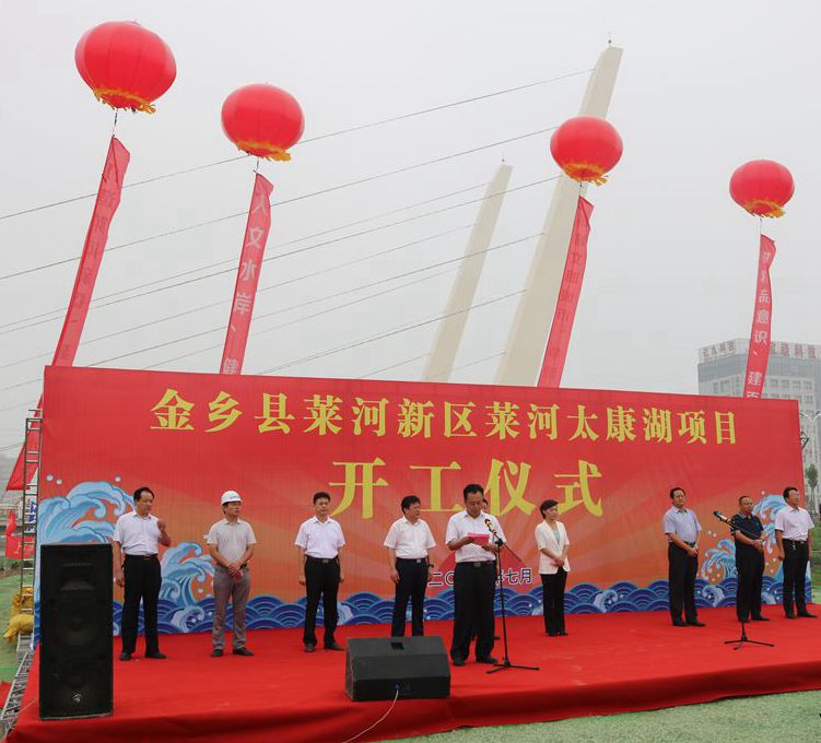 7月28日,莱河新区莱河太康湖项目开工仪式在金乡县举行。金乡县委书记董冰,县委副书记、县长郑士民,县人大常委会主任付元琦,县政协主席胡桂生,山东水控发展集团有限公司董事长吴东振、总经理李加坤,济宁金水水利工程有限公司,县财政局、国土局等政府各部门主要负责人150余人出席开工仪式。仪式由县委副书记、县长郑士民主持。