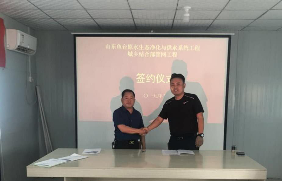 5月21日下午,山东鱼台原水生态净化与供水系统工程城乡结合部管网工程施工签约仪式在鱼台县顺利举行。水发金水建设工程有限公司总经理苏福贵、山东水发贤达水务有限公司总经理潘爱国出席并签订了合同。
