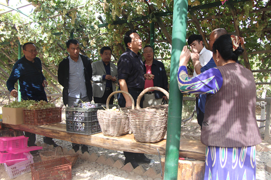 为打造农业全产业链,提升核心竞争力,考察团与生之道生态农业科技股份有限公司就省肥节水技术方面进行座谈,研究合作方案;前往喀什地区生态葡萄园考察农产品产业化、订单化运作模式;与喀什远方国际物流港有限责任公司就组建干果、水果批发物流基地进行深入的交流与探讨,切实解决新疆地区货物流通问题。