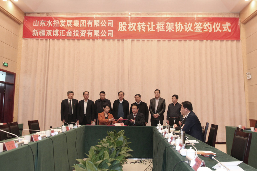 2月28日,山东水控发展集团有限公司(以下简称:水控集团)与新疆双博汇金投资有限公司(以下简称:双博汇金公司)在双河市举行股权转让框架协议签约仪式。新疆生产建设兵团第五师、双河市党委常委、副师长王作敏,副市长叶松出席签约仪式,新疆生产建设兵团第五师、双河市国资委主任李实主持签约仪式。