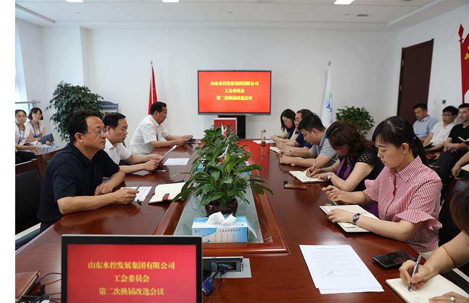 6月21日,水控集团全体在济职工在党员活动室召开山东水控发展集团有限公司第二届工会委员会换届选举大会。会议由水控集团党支部书记、董事长吴东振主持。